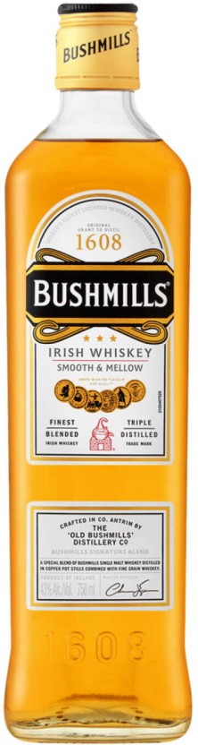 Bushmills Irish Whiskey is a classic smooth Irish whiskey with a delicate character. Triple-distilled from malted and unmalted barley, it offers notes of vanilla, honey, and toasted wood. Perfect for sipping neat or in cocktails.