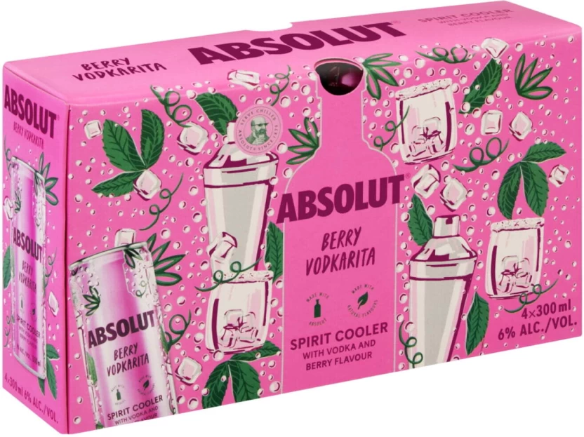 Absolut Berry Vodkarita Sprit Cooler (Pack of 4 x 300 ml) | Shop Online