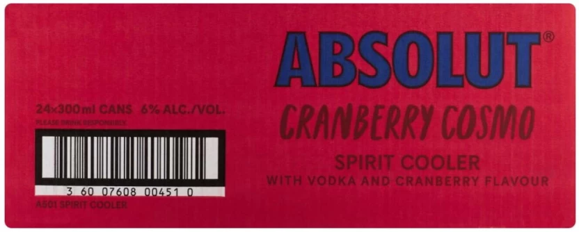 Absolut Cranberry Cosmo Sprit Cooler (Pack of 24 x 300 ml) | Shop Online