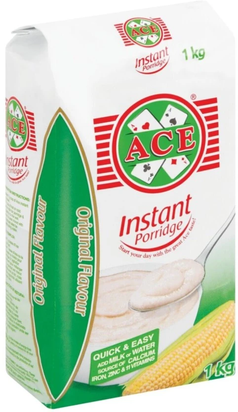 Brand: Ace Type: Instant Porridge ORIGINAL Pouch Size/Pack: 10 x 1 kg This product is sold as a single unit carton containing 10 individual Ace Instant Porridge ORIGINAL 1kg pouches (Total Net Weight: 10 kg). Store unopened pouches in a cool, dry environment away from direct sunlight to maintain optimal freshness and shelf life. Produced by Ace, guaranteeing a consistently high-quality instant food product for reliable convenience.