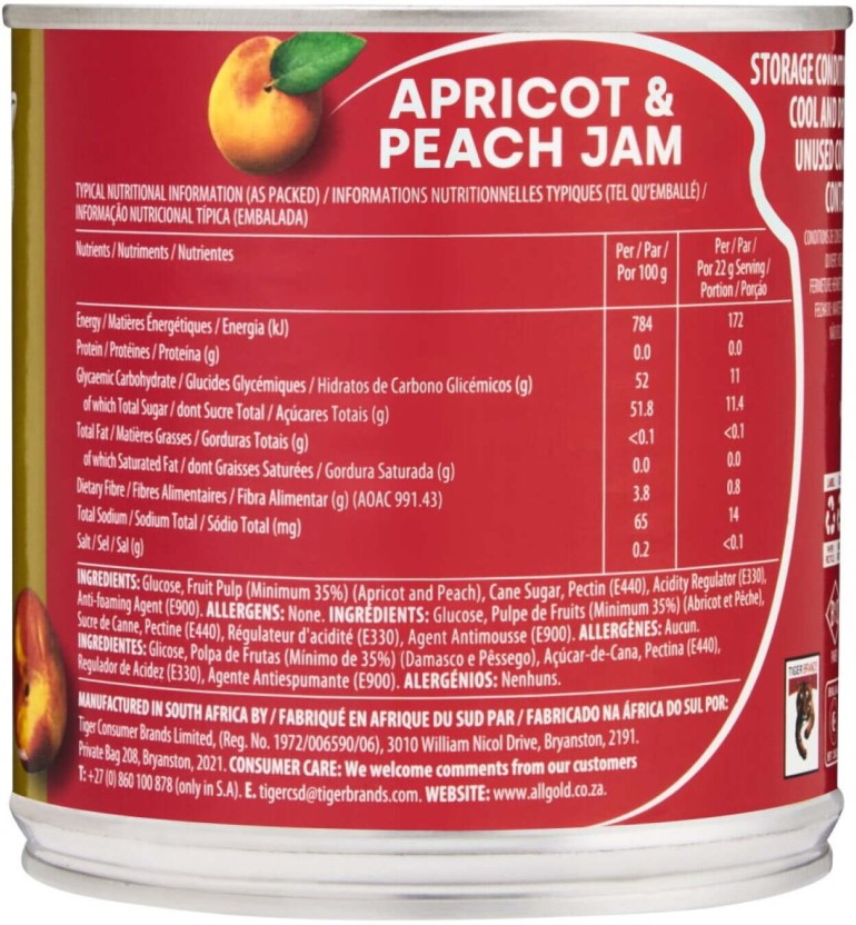 All Gold Apricot and Peach Jam 900 g combines the sweetness of peaches with the tangy flavour of apricots for a delicious, fruity spread. Ideal for toast, baking, or desserts.