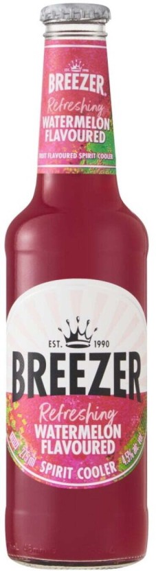 Bacardi Watermelon Breezer is a fruity, lightly alcoholic spirit cooler with watermelon flavor. The 24-pack of 275 ml bottles is perfect for parties, events, or personal enjoyment.