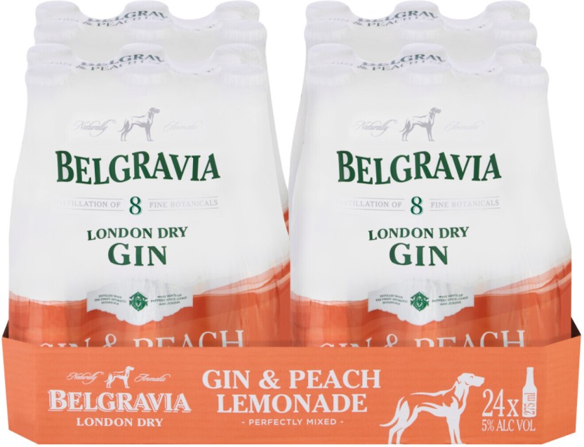 Belgravia Gin & Peach Lemonade Spirit Premix (Pack of 24 x 275 ml) | Shop Online