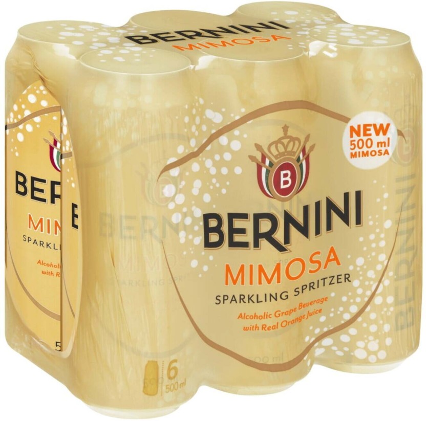 Bernini Mimosa Spritzer combines sparkling wine with orange flavor for a light, refreshing beverage. The 6-pack of 500 ml bottles is perfect for brunch, parties, or social gatherings.