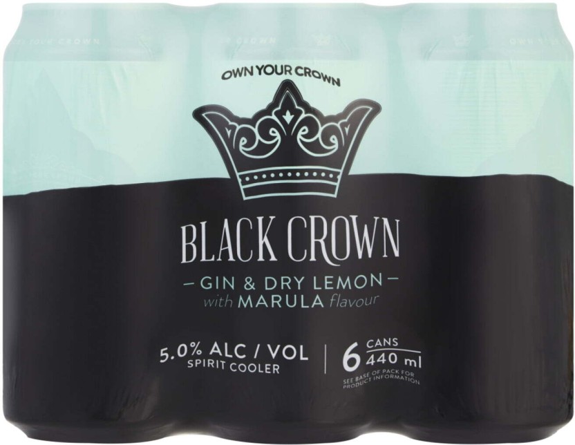 Black Crown Premium Premix Gin and Dry Lemon with Marula Cans ( Pack of 6 x 440ml, 5 Percent Alcohol Volume) | Shop Online