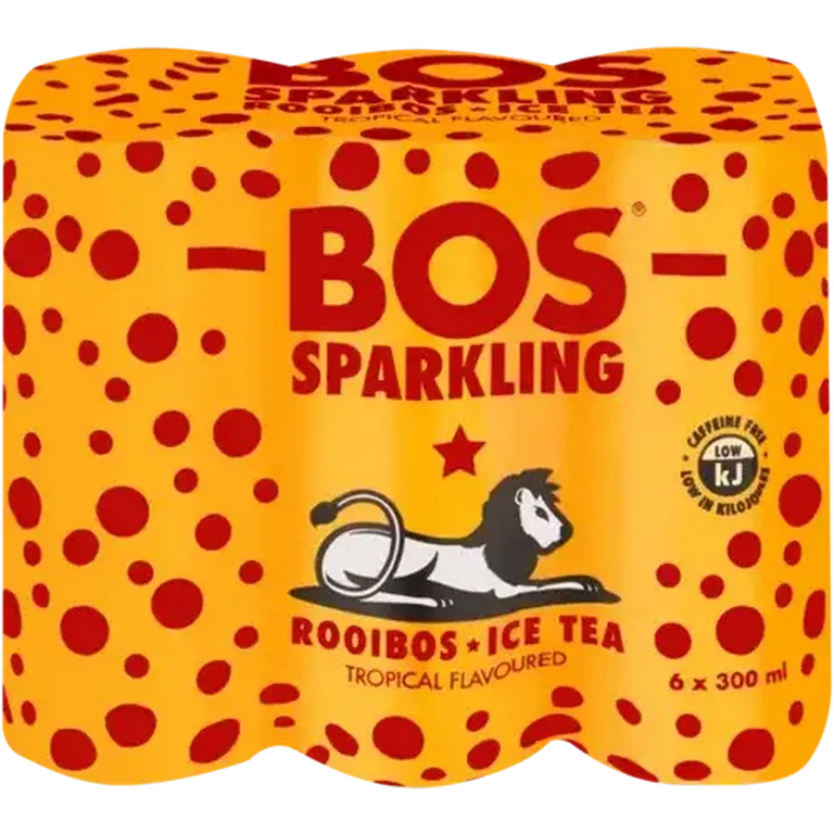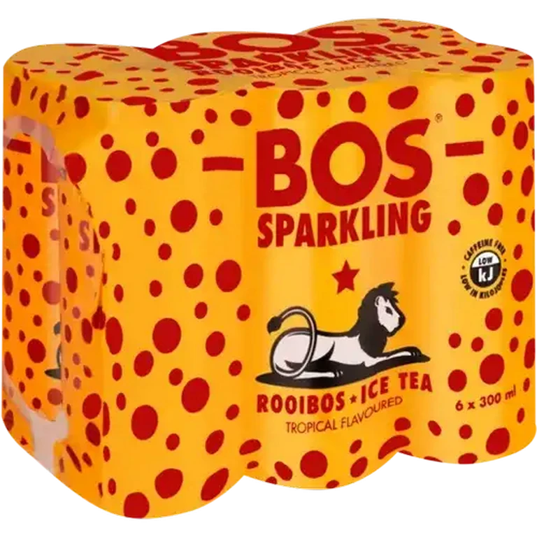 Experience the ultimate refreshment with Bos Sparkling Tropical Flavoured Rooibos Iced Tea. This vibrant, naturally caffeine-free beverage blends the goodness of authentic South African Rooibos with dazzling tropical fruit notes, delivered in a convenient 6-pack ready for pure enjoyment.