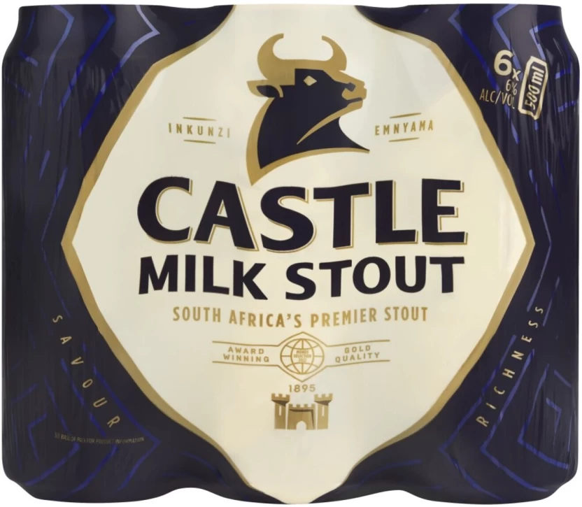 Castle Milk Stout is a rich, creamy stout with smooth chocolate and malt flavours. The 6-pack of 500 ml cans is ideal for stout lovers to enjoy at home or with friends.