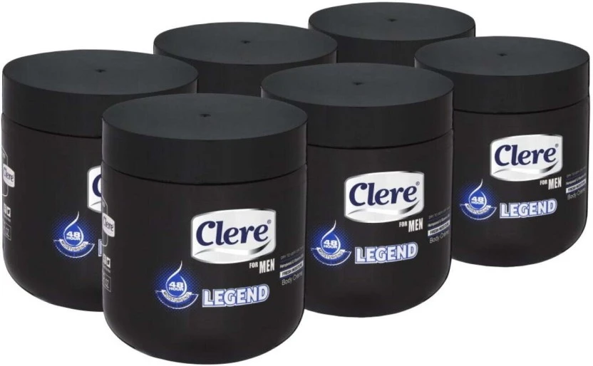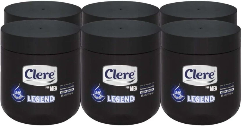 Brand: Clere Type: Legend Body Cream Size/Pack: 450 ml, Pack of 6 Trusted Clere Legacy: Formulated by Clere, a trusted name in body care, delivering high-quality nourishment for decades. Usage Instructions: Apply daily to the entire body after showering or bathing. For best results, massage generously into dry areas like elbows and knees. Generous Standard Size: Each tub contains 450 ml, offering excellent value and convenience in a sturdy, easy-to-open container.