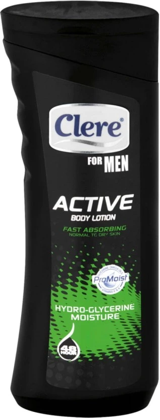 Brand: Clere Type: Men Active Body Lotion Size/Pack: 400 ml Application Instructions: Apply generously to the entire body after showering or when skin requires extra moisture. Use daily for optimal results. Brand Trust: Part of the trusted Clere range, this lotion is formulated to meet the unique hydration needs of men's skin. Skin Type Suitability: Suitable for all skin types, including skin prone to dryness and irritation from daily activity.