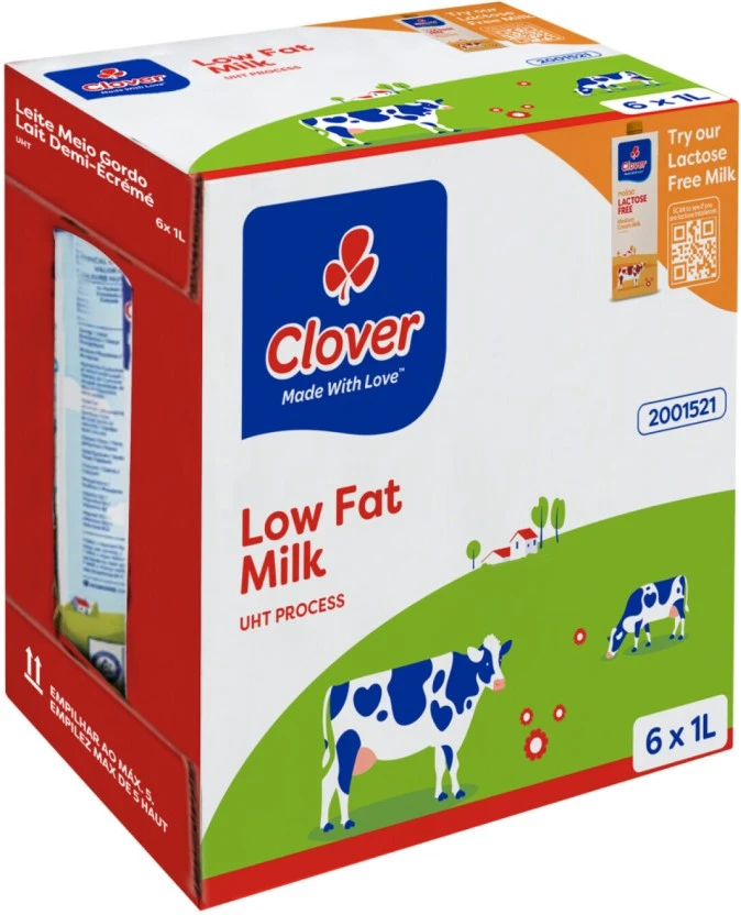 Clover Low Fat Milk Long Life, Plain Flavour (6 x 1 L) | Shop Online