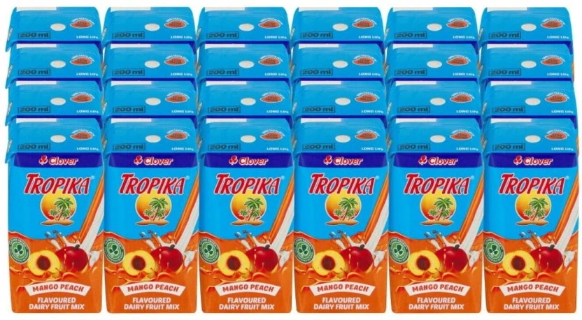 Brand: Clover Type: Tropika Mango Peach Flavoured Diary Fruit Mix Size/Pack: 24 x 200 ml Unit Specifications: This single unit consists of 24 smaller 200 ml cartons, providing a total volume of 4.8 liters of dairy fruit mix. Serving Suggestion: Best served well chilled. Shake gently before opening for optimal flavor distribution. Dairy Fruit Mix Standard Variant: A classic combination of fruit flavor and dairy ingredients, loved by both children and adults.