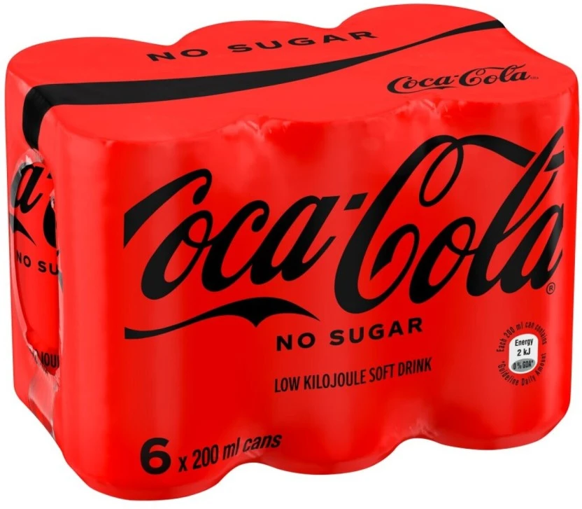 Enjoy the iconic taste of Coca-Cola without the sugar! This convenient 6-pack of 200ml bottles features the improved 'No Sugar' formula, meticulously crafted to taste even more like the original classic Coke. Perfect for satisfying cravings or enjoying a guilt-free refreshment on the go.