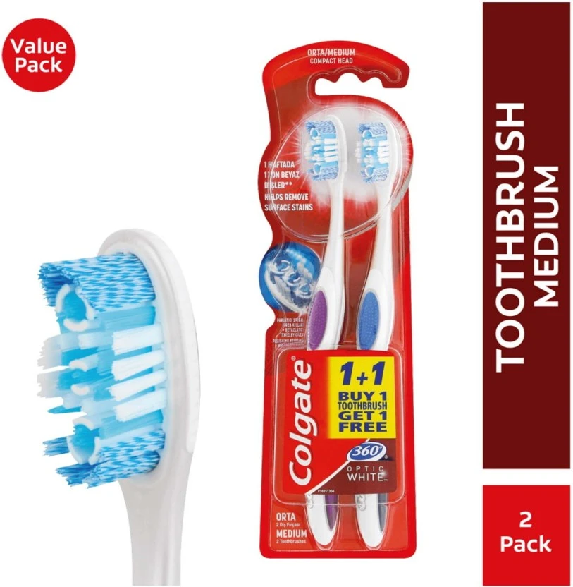 Get ready for a brighter smile and a whole-mouth clean with the Colgate 360 Optic White Luminous Medium Toothbrush. Designed with unique polishing cups and specialized medium bristles, this brush actively removes surface stains while the integrated cheek and tongue cleaner ensures comprehensive oral hygiene. This convenient bulk pack contains 12 toothbrushes.
