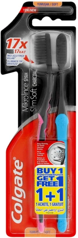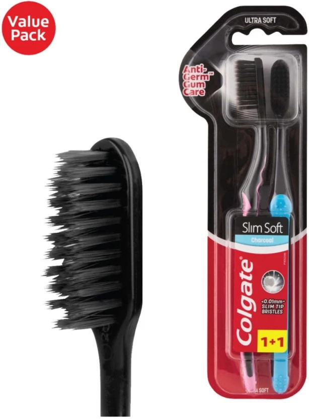 Achieve an exceptional deep clean with the Colgate Slim Charcoal Soft Toothbrush. Featuring innovative 17x slimmer tip bristles infused with Binchotan charcoal, this brush reaches deeply between teeth and below the gumline while remaining incredibly gentle on your gums.