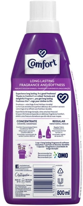 Experience the ultimate in laundry luxury with Comfort Calming Lavender Concentrated Fabric Softener. This powerful 800 ml formula delivers incredible softness and infuses your clothes with a long-lasting, serene lavender scent designed to soothe and relax your senses.