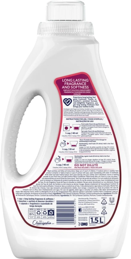 Transform your laundry routine with Comfort Uplifting Fabric Conditioner Fabric Softener. This generous 1.5L bottle delivers unbeatable softness, protects your clothing fibers, and infuses them with a vibrant, long-lasting fragrance that keeps you feeling fresh and energized all day.
