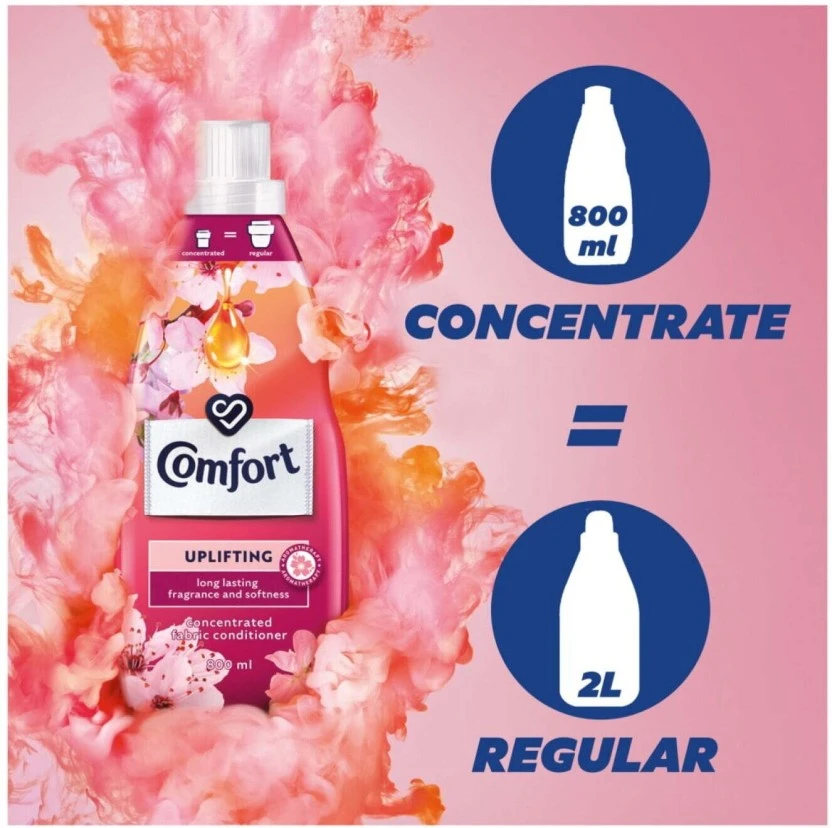 Transform your laundry routine with the Comfort Uplifting Fabric Softener. This 800 ml bottle delivers powerful, long-lasting freshness and superior softness, making your clothes irresistibly smooth and wonderfully scented. Elevate your everyday wear with Comfort's signature care.