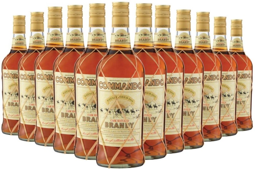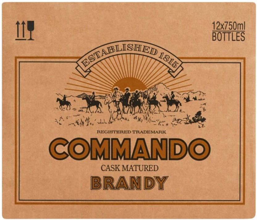 Commando Brandy in a convenient pack of 12 bottles, offering a smooth and bold South African brandy experience, perfect for events or commercial use.
