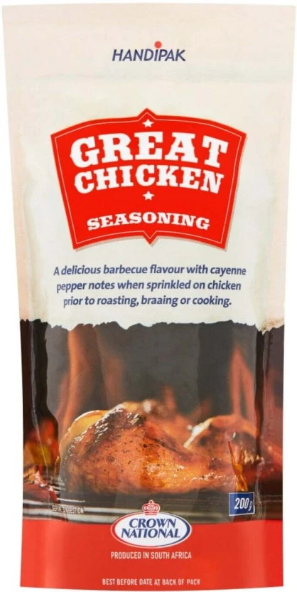Brand: Crown Type: Great Chicken Seasoning Size/Pack: 1 x 200 g Package contains one unit of Crown Great Chicken Seasoning (200 grams total weight). Suggested use: Apply 1-2 tablespoons of seasoning per pound of chicken, ensuring even coating before heat application. Store in a cool, dark, and dry place to maintain maximum freshness and flavor potency.