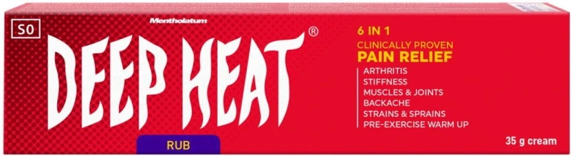 Deep Heat Rub provides warming relief for muscle pain, stiffness, and minor sprains. The antiseptic action helps keep the area clean during application.