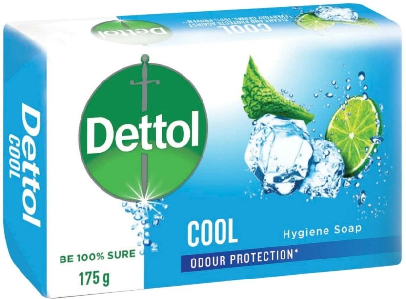 Pack Specification: Includes 12 individually wrapped Dettol Cool Hygiene Soap bars, each weighing 175 grams (Total net weight 2.1 kg).