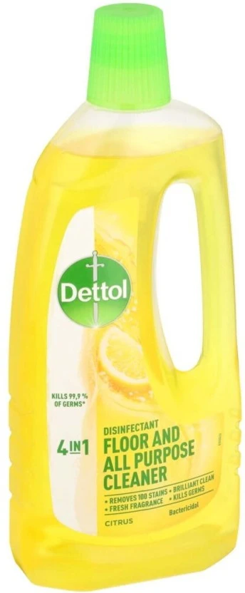 Dettol Disinfectant Floor & All Purpose Cleaner Citrus effectively cleans and disinfects floors and hard surfaces, killing 99.9% of germs. Its citrus fragrance leaves a fresh, clean scent throughout your home. The 750 ml bottle is ideal for daily cleaning routines in kitchens, bathrooms, and living areas. Safe for most hard surfaces.