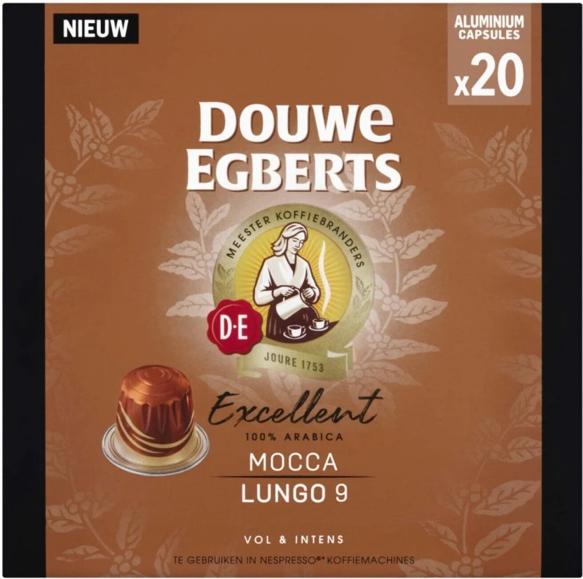 Indulge in the luxurious taste of Douwe Egberts Excellent Mocca Lungo capsules. Crafted exclusively from 100% Arabica beans and infused with a rich mocha essence, these Intensity 9 pods deliver a perfectly balanced, aromatic long coffee experience (Lungo) right in your kitchen. Enjoy premium quality coffee effortlessly.