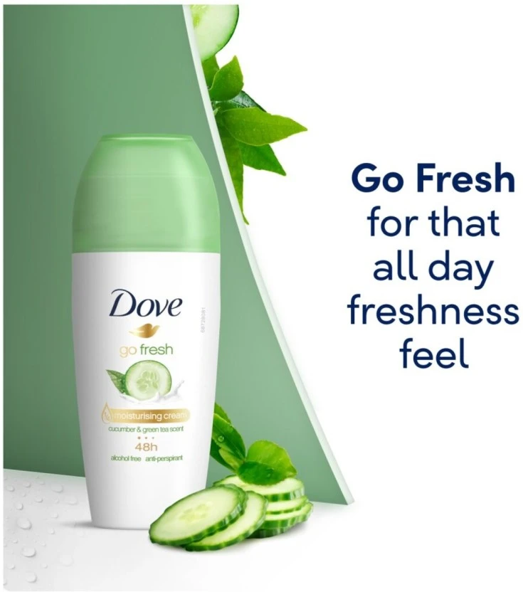 Dove Go Fresh Cucumber & Green Tea Scent Deodorant Roll-on – For Women (50 ml) | Shop Online