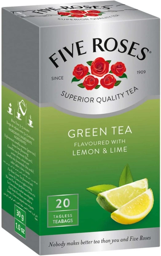 Five Roses Lemon & Lime Flavoured Green Tea Box (20 Bags) | Shop Online