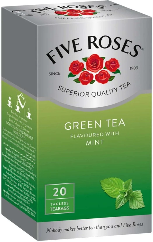 Five Roses Mint Flavoured Green Tea Box (20 Bags) | Shop Online