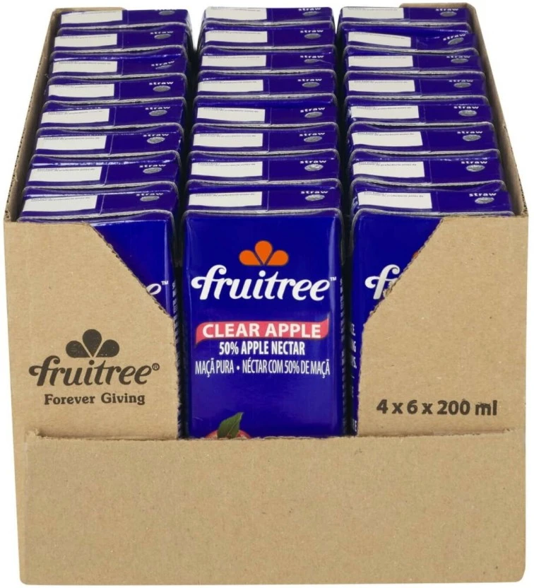 Brand: Fruitree Type: Clear Apple Nectar Size/Pack: 24 x 200 ml Product variant: Standard clear apple nectar. Packaging details: Case includes 24 single-serving 200 ml cartons. Storage instructions: Store in a cool, dry place. Best served chilled for optimal flavor.
