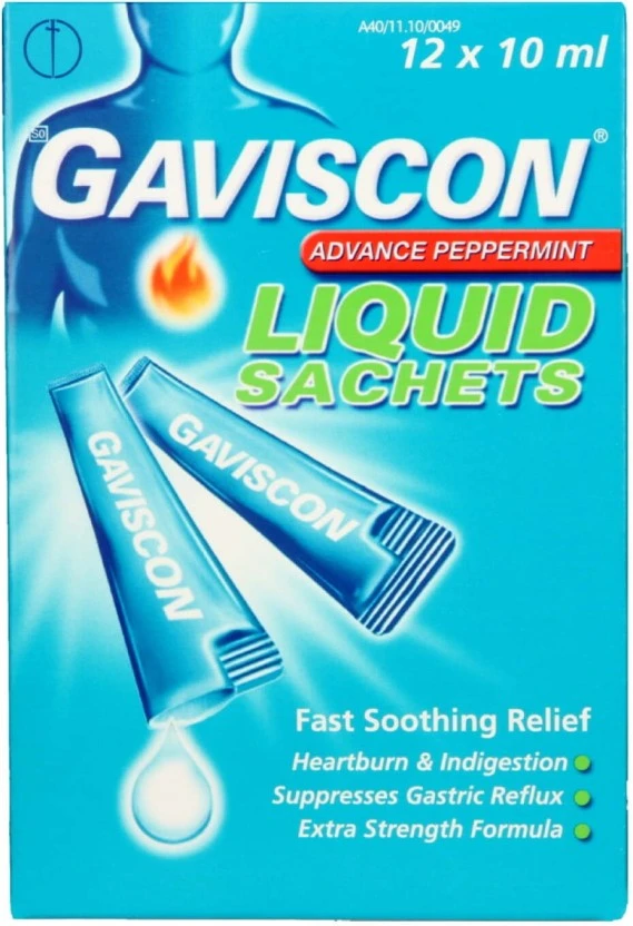 Gaviscon Double Action provides fast relief from heartburn and acid reflux. Each pack contains 144 liquid sachets of 10 ml.