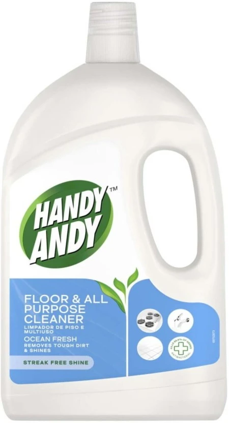 Handy Andy Floor & All Purpose Cleaner Ocean is a multi-purpose liquid cleaner that effectively cleans, disinfects, and deodorizes floors and other hard surfaces, leaving a fresh ocean fragrance.