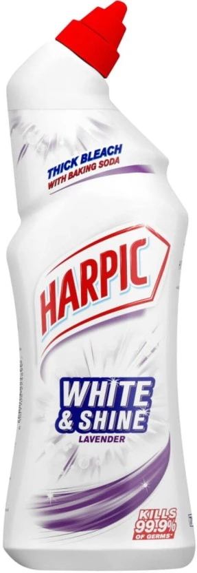 Brand: Harpic Type: White & Shine Multipurpose Thick Bleach Lavender Liquid Toilet Cleaner Size/Pack: 12 x 750 ml Usage Instructions: Apply the cleaner directly under the toilet rim and leave for 15 minutes before scrubbing and flushing. For general surfaces, dilute the cleaner as necessary and rinse thoroughly. Trusted Brand Performance: Harpic is a global leader in bathroom hygiene, offering reliable, high-performance solutions designed to tackle the most persistent bathroom messes. Storage and Handling: Store bottles upright in a cool, dry place. Always read the safety instructions before use as the product contains bleach.