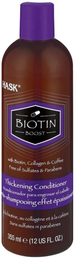 Brand: HASK Type: Hair Boitin Conditioner Size/Pack: 355 ml Directions for Use: Apply generously to clean, wet hair. Leave in for 1–2 minutes, then rinse thoroughly. For best results, use with HASK Biotin Boost Shampoo. Product Specifications: Standard variant, single unit conditioner bottle containing 355 ml (12 fl oz). Brand Commitment: HASK is dedicated to using high-quality ingredients and is proudly Leaping Bunny certified cruelty-free.