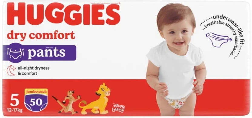 Huggies Dry Comfort All Night Dryness Pant Diapers Size 5 (50 Diapers)