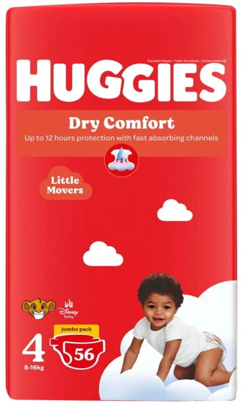 Huggies Dry Comfort Tape Diapers Size 4 offer dependable dryness and comfort for growing babies. The fast-absorbing core helps prevent leaks while keeping skin dry. Designed with soft and breathable materials, these diapers allow free movement. Ideal for both day and night protection.