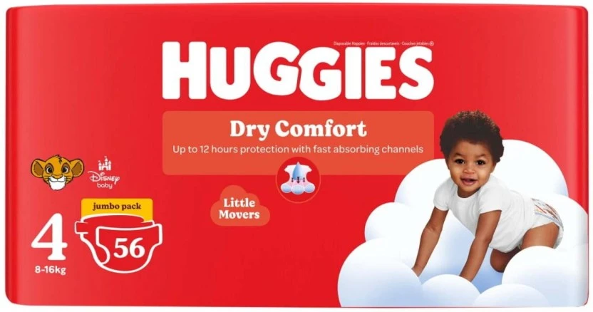 Huggies Dry Comfort Jumbo Pack Tape Diapers Size 4 (56 Pieces)