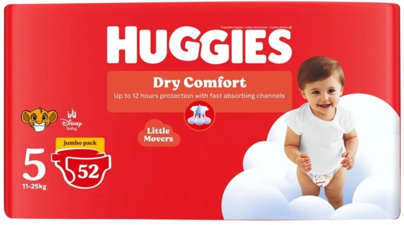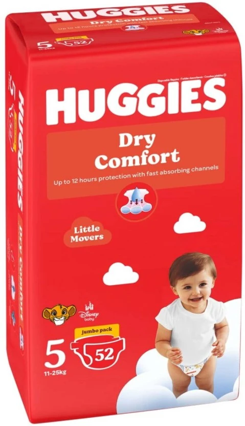 Huggies Dry Comfort Jumbo Pack Tape Diapers Size 5 (52 Diapers)