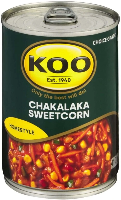 Experience the authentic taste of South Africa with KOO Chakalaka with Sweet Corn Vegetables. This 410g can delivers a flavorful and convenient mix of traditional chakalaka relish combined with sweet, juicy corn kernels, perfect for adding a vibrant kick to any lunch or dinner.