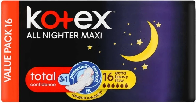 Kotex All Nighter Overnight Pads Regularsize Sanitary Pad (Pack of 16) | Shop Online