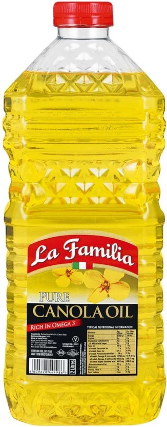 Brand: La Type: Familia Pure Canola Oil Plastic Bottle Culinary Versatility: The go-to choice for every cooking method, ensuring consistent, reliable results whether you are pan-frying, baking goods, or crafting marinades. Trusted Quality: Sourced and bottled by the renowned La Familia brand, guaranteeing consistent purity and performance in every 2-liter unit. Storage Recommendation: For optimal freshness, store sealed bottles in a cool, dark environment, away from heat and direct sunlight.