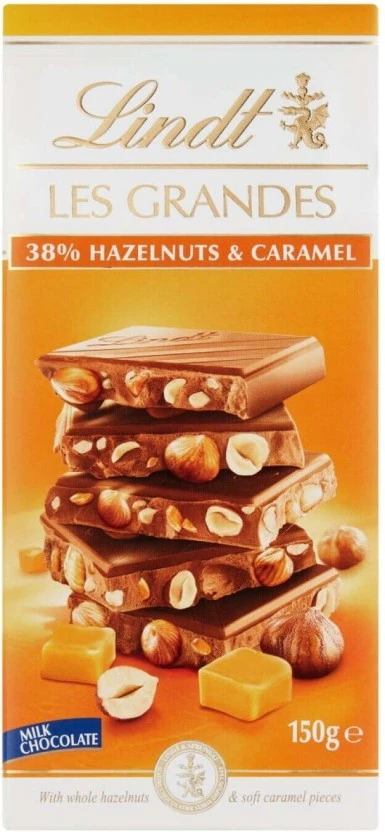 Lindt Les Grandes 38% Hazelnuts & Caramel Milk Chocolate Bars (150 g) | Shop Online