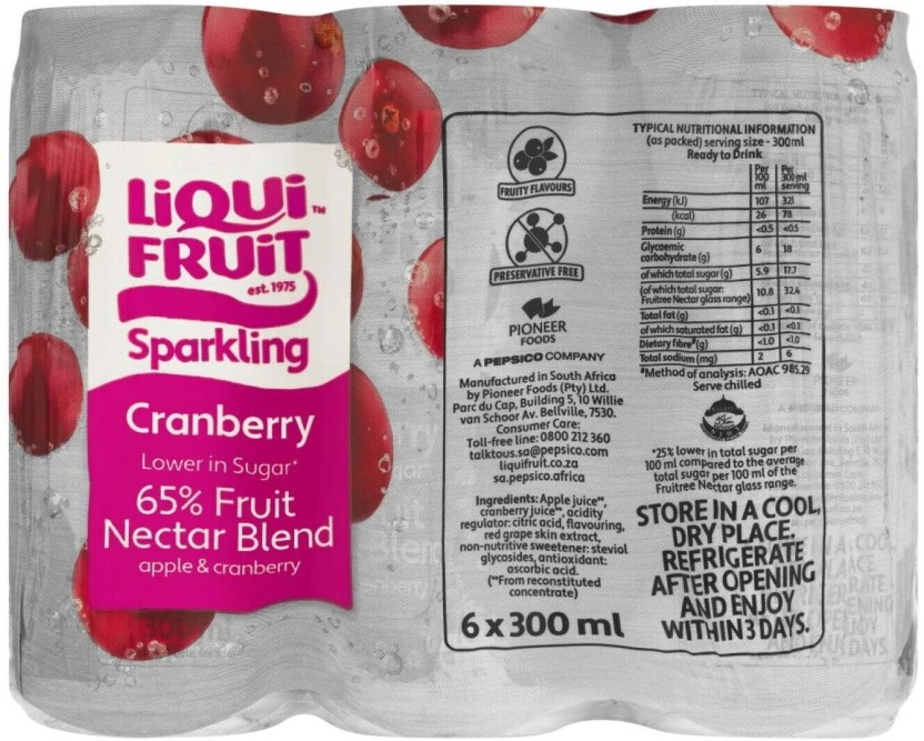 Brand: Liqui Type: Fruit Sparkling Apple & Cranberry Nectar Size/Pack: 6 x 300 ml This single unit contains 6 individual bottles of 300 ml each, providing a total volume of 1.8 Litres. Premium fruit sparkling nectar variant, suitable for enjoyment anytime, anywhere. Store in a cool, dark place. Refrigerate any remaining portion after opening and consume promptly.