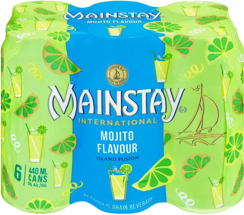 • 6 × 440 ml Mainstay Mojito Flavour Island Fusion Spirit Premix