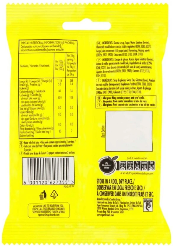 Indulge in the timeless taste of Maynards Original Fruit Wine Gums! This handy 60g pack delivers the iconic, satisfyingly chewy texture and delicious, authentic fruit flavors that have made these classic jelly sweets a beloved British favorite for generations. Perfect for a quick, on-the-go treat.