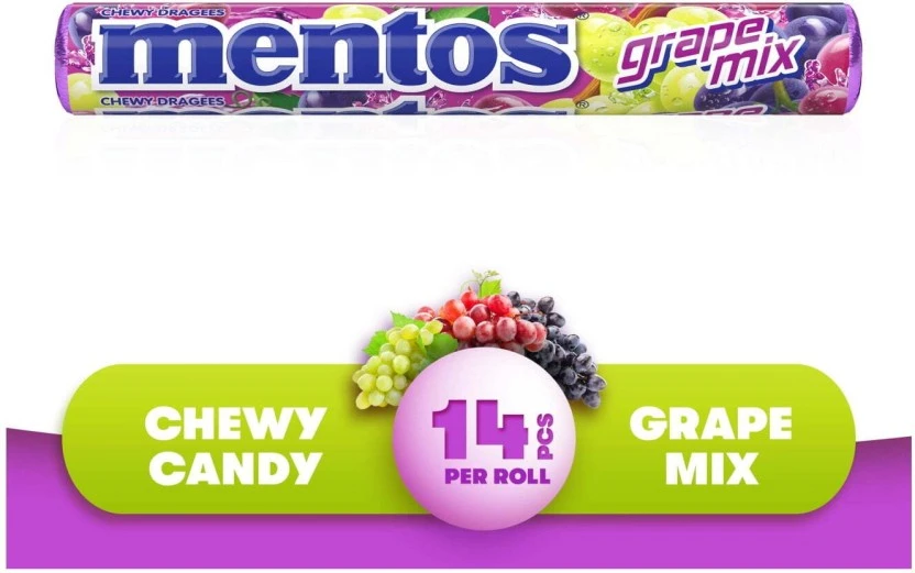 Experience the irresistible chewiness of Mentos Chewy Dragees, now bursting with vibrant, naturally flavored grape sweetness. This single, convenient 37.5g roll is the perfect pocket-sized treat for an instant refreshing boost anytime, anywhere.