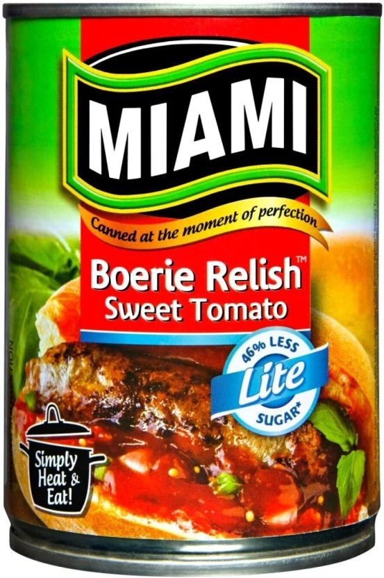 Bring the authentic taste of the braai right to your table! Miami's Sweet Tomato Boerie Relish is the perfect 450g jar of tangy-sweet tomato goodness, crafted specifically to elevate your boerewors rolls, burgers, and grilled meats with an irresistible homemade flavor.