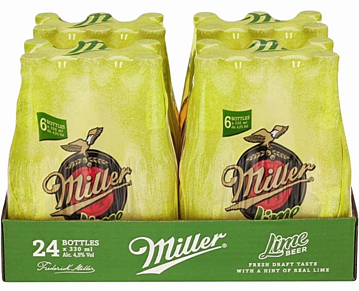 24 x 330 ml Miller Genuine Draft Lime Lager Bottles