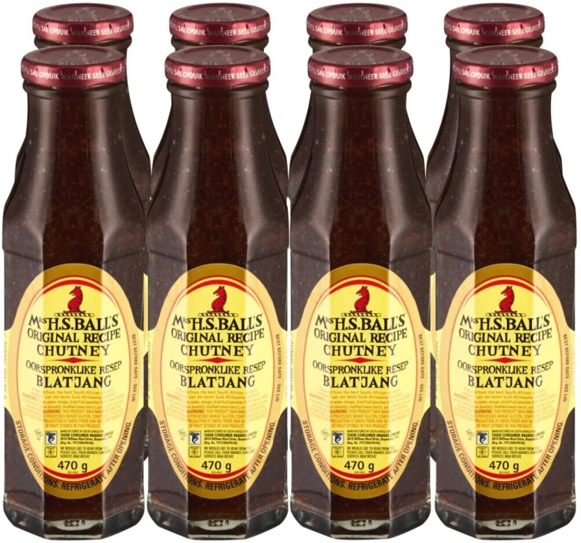Brand: Mrs Type: Ball's Oorspronklike Respe Blatjang Dip Size/Pack: 8 x 470 g A staple in South African pantries, this Blatjang Dip is a must-have accompaniment for boerewors rolls, samosas, and traditional braais (BBQs). Economical 8-pack ensures you always have this gourmet condiment on hand for parties, holiday gatherings, or restaurant use. Store in a cool, dry place. Refrigerate after opening to maintain optimum freshness and flavor.
